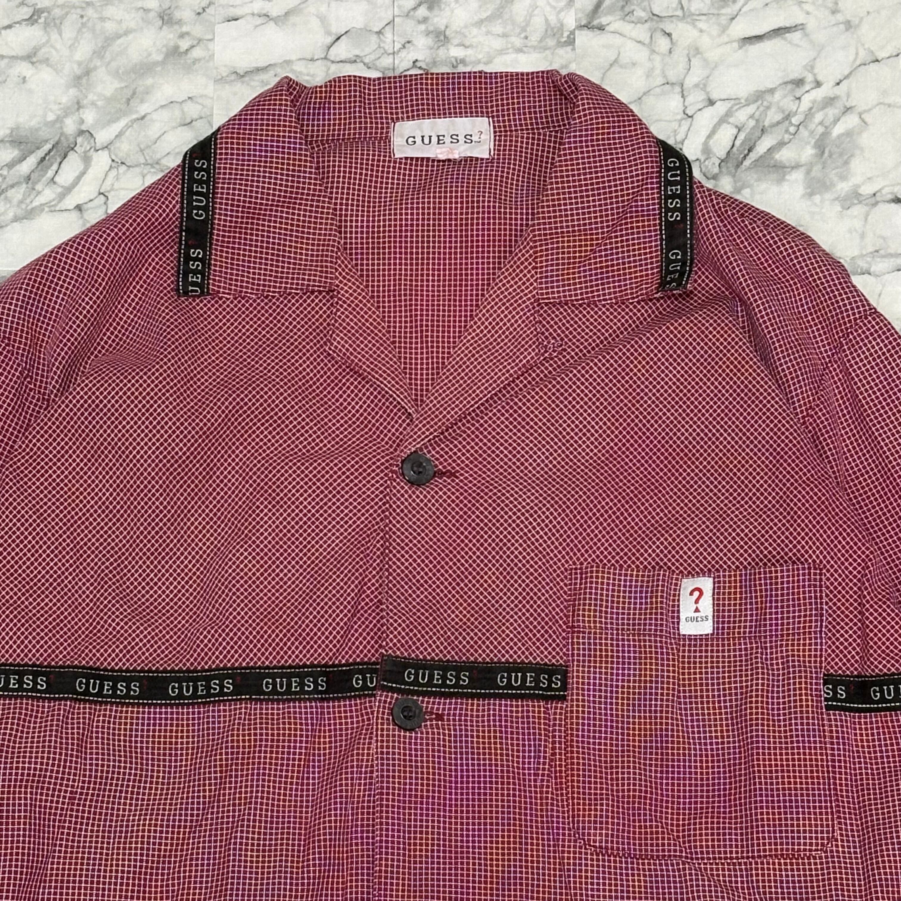 "GUESS" Cut off design L/S check open color shirt made in Japan