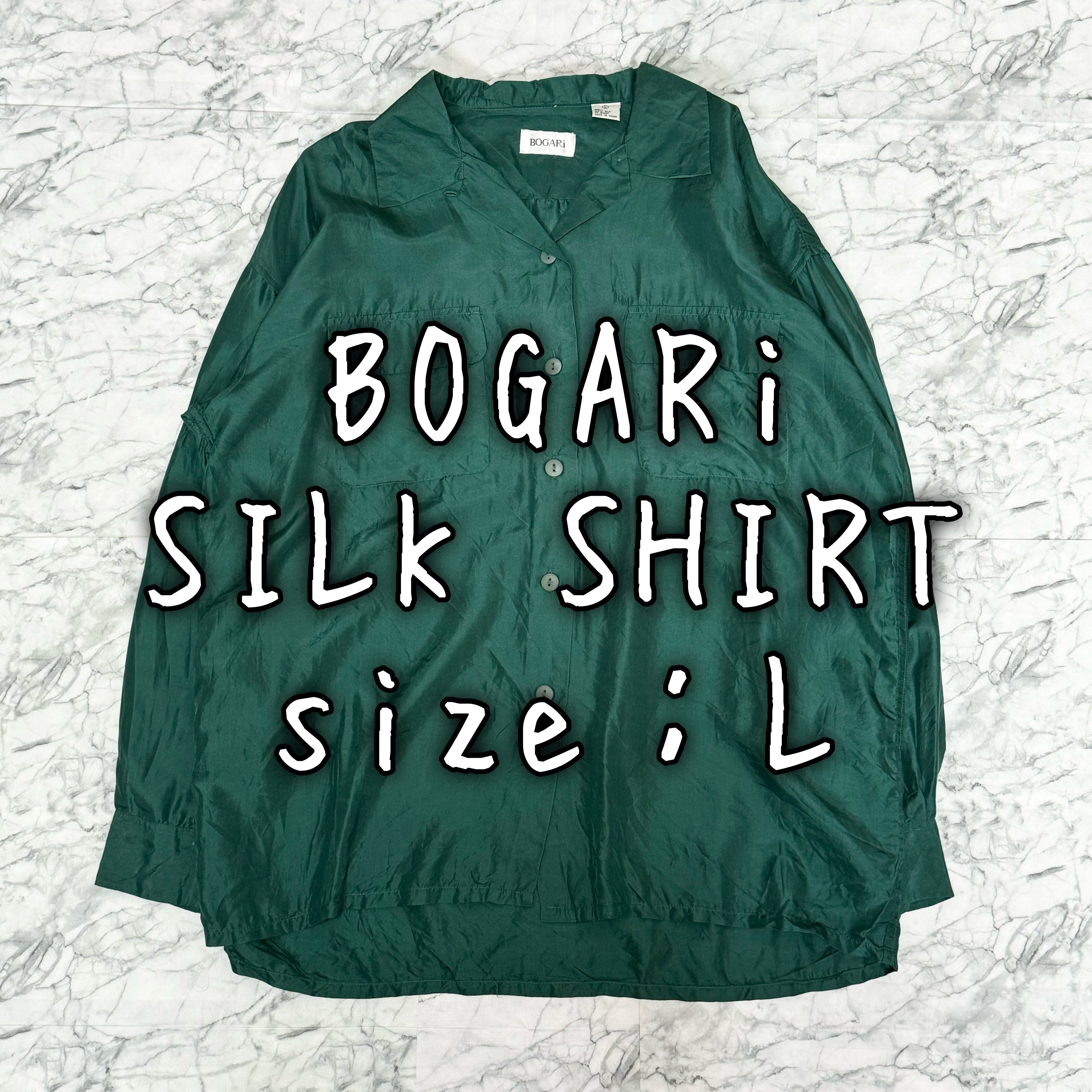 BOGARi シルクシャツ L オープンカラー ダブルポケット