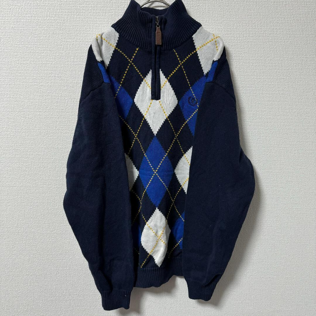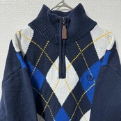 IZOD ニット L ハーフジップ アーガイル柄 刺繍ロゴ